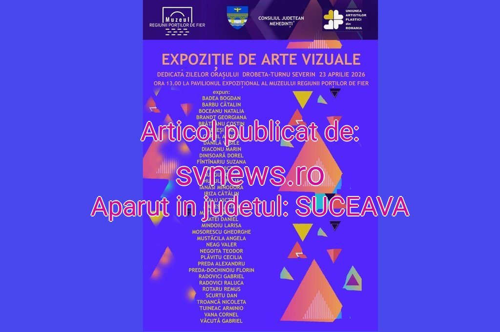 Cu prilejul Zilelor Orașului Drobeta-Turnu Severin, publicul este invitat la un important eveniment cultural dedicat artei contemporane: o amplă Expoziție de Artă Vizuală, organizată de Uniunea Artiștilor Plastici din România, împreună cu Uniunea Artiștilor Plastici din România – Filiala Drobeta-Turnu Severin, în parteneriat cu Muzeul Regiunii Porților de Fier și Consiliul Județean Mehedinți.