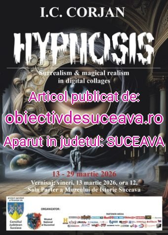Muzeul Național al Bucovinei organizează vineri, 13 martie 2026, de la ora 12:00, în Sala Parter a Muzeului de Istorie din Suceava, vernisajul expoziției „Hypnosis. Surrealism & Magical Realism in Digital Collages”, semnată de artistul vizual I.C. Corjan.